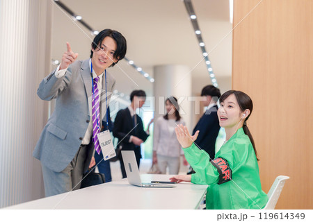 ショッピングモールでお客様の案内をするイベントスタッフ