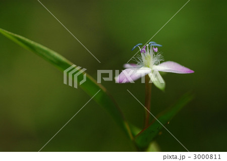 自然 植物 イボクサ、花びらのピンクから白へのグラデーション、雄しべの青が美しい
