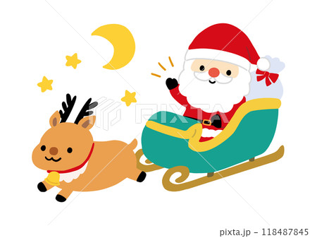 ソリに乗るサンタとトナカイのイラスト クリスマス