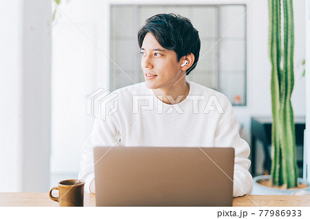 男性 パソコン テレワーク リモートワーク リビング ライフスタイル