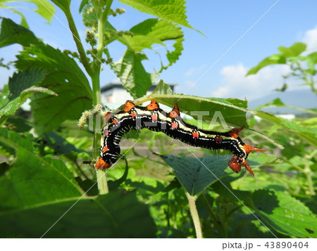 カラムシの葉を食べる「フクラスズメ」の幼虫