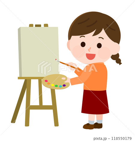 キャンバスに絵を描こうとする女の子 イラスト