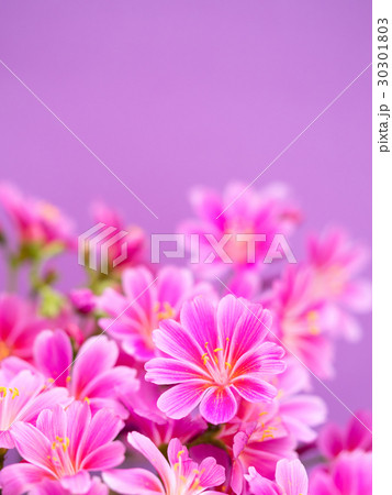 レウイシア、次から次へと咲き続ける。乾燥に強く、多湿に弱いが、育てやすい。青空。花イメージ素材