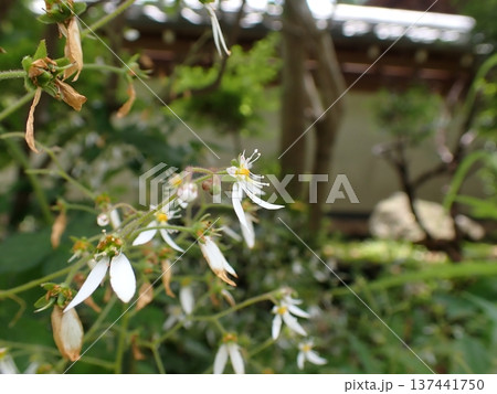 公園の片隅に咲いたユキノシタ (花とつぼみをつけたイドクサ)