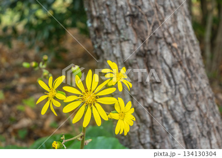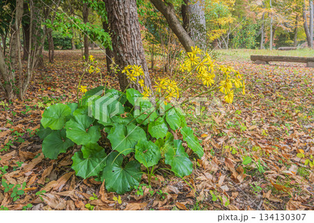 京都御苑の樹林に咲くツワブキ 京都市