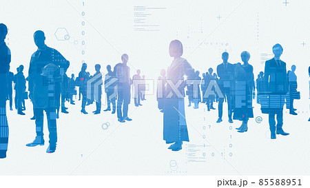 街を歩く多国籍ビジネスパーソンのグループとデジタルテクノロジーのコンセプト