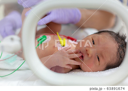 保育器で頑張る新生児 新生児 保育器