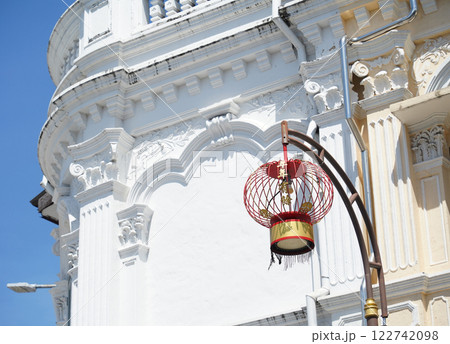 窓辺に飾られたクリスマスリース クリスマスイメージ