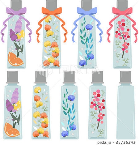 ハーバリウムのイラストセット(角型・リボン付・リボンなし・空瓶)