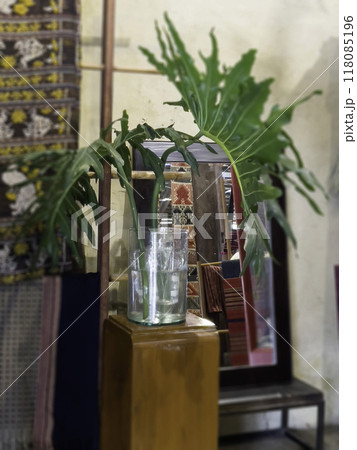 Group of sacrifice oblation offerings for Gods and spiritual in Hinduism on the street of Ubud market in Bali, Indonesia.