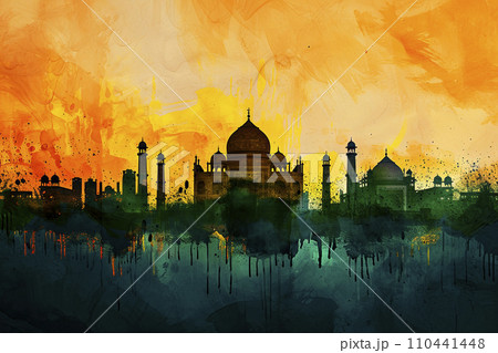 illustration of the taj mahal with blue and yellow paint
