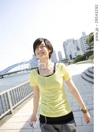 音楽を聞きながらウォーキングする女性