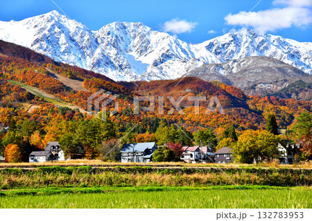 白馬村の風景/五竜岳~白馬八方尾根スキー場方面を望む(長野県白馬村)【2025.3】