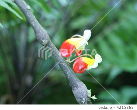 アフリカ東部原産の下部が黄色で先が赤色の面白い形の花が可愛いインパチエンス・ニアムニアメンシス