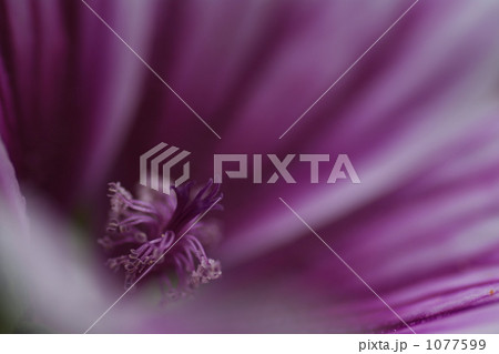 緑の背景に鮮やかな紫色のアフリカホウセンカの花一輪(マクロレンズ使用・自然光・接写写真)