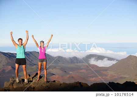 Hikers - people hiking sitting enjoying summit top