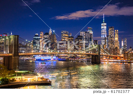 《ニューヨーク》マンハッタンとブルックリンブリッジの夜景