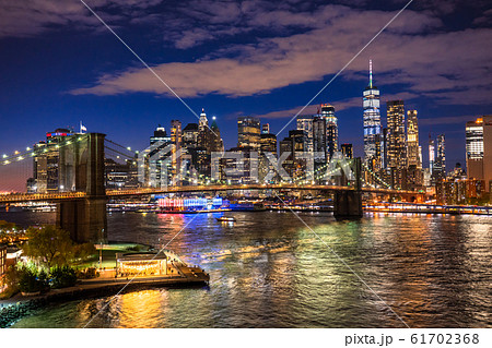 《ニューヨーク》マンハッタンとブルックリンブリッジの夜景