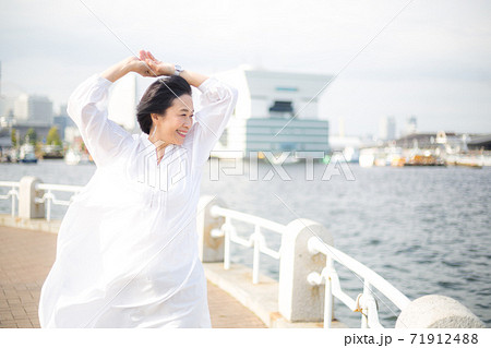 山下公園界隈を楽しむさわやかミドルシニア女性