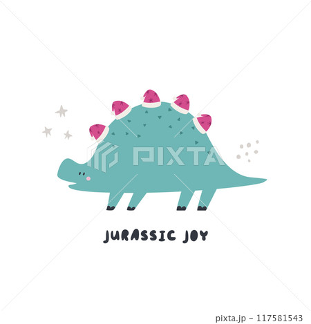 Hand drawn Christmas illustration with funny dinosaur stegosaurus