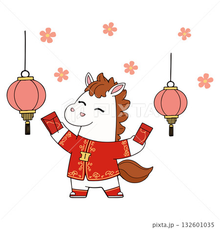 Cartoon Horse with Red Envelope and Lantern