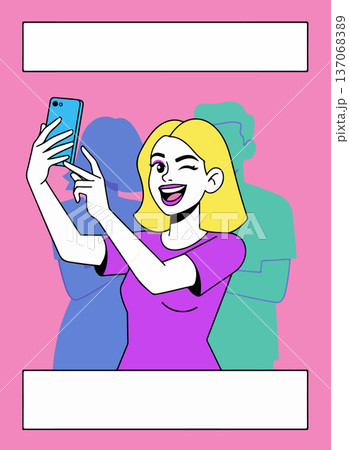 Cartoon Woman Taking a Selfie