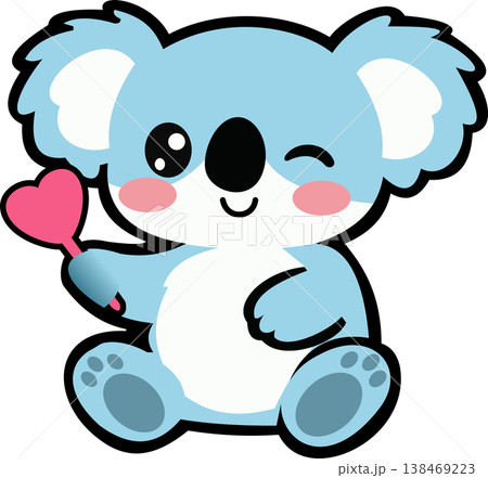 Cute blue koala cartoon character holding a pink heart isolated on transparent background