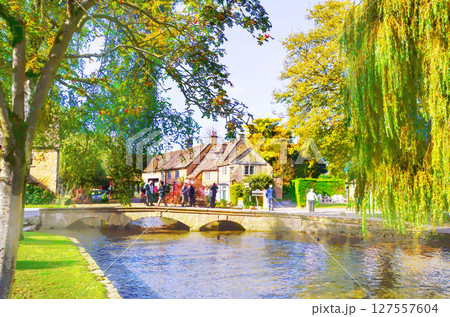 川のある景色 ボートン・オン・ザ・ウォーター 水彩画