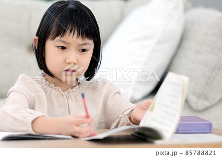 自宅で勉強する小学生女児