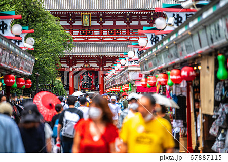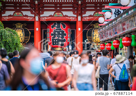 日本の東京都市景観 東京・浅草寺・マスク姿が目立つ(4連休最終日)=7月26日