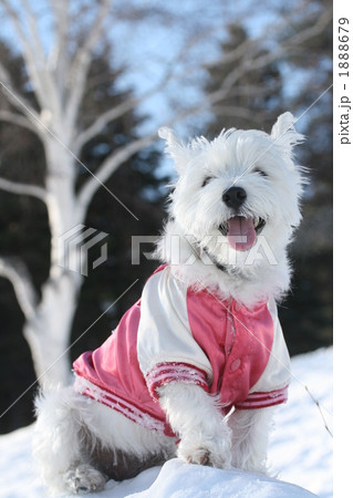 真っ白な雪景色の中のホワイトテリア