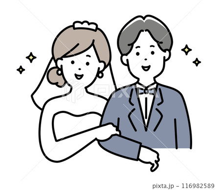 笑顔で腕組みをする新郎新婦のイラスト素材 上半身