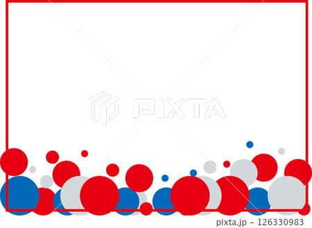 2025年大阪万博のイメージカラー 赤と青のポップな水玉フレーム ベクターイラスト タイトルバナー