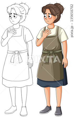 Smiling Woman Walking in Apron Cartoon Vector Illustration