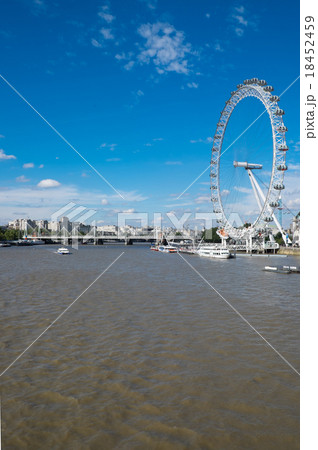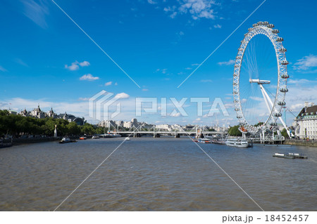ロンドン:ウォータールー橋からみたテムズ川とロンドンアイ
