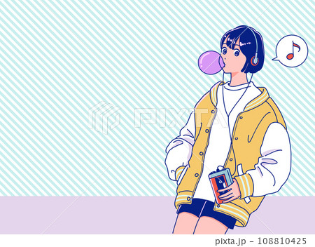 ウォークマンで音楽を聴くレトロポップな女の子