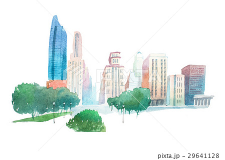 Aquarelle modern city landscape park and buildings