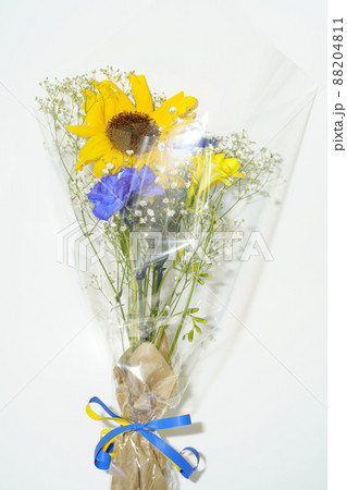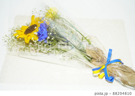 ウクライナカラーの青色と黄色の花束