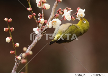梅の蜜を吸いにやってきた可愛い小鳥、メジロ