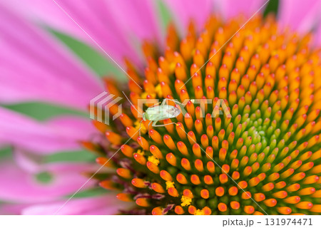 エキナセアの花にとまるウスモンミドリカスミカメ