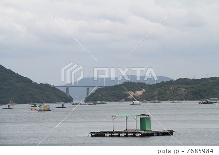 徳島県鳴門市 堀越橋からウチノ海に浮かぶ釣り筏を望む