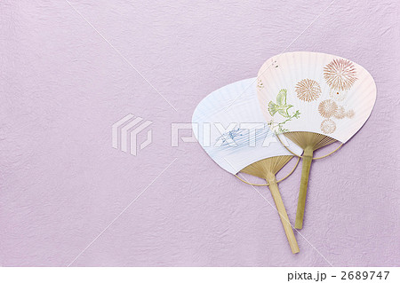2枚のウチワと暑中見舞いハガキ 暑中見舞い素材
