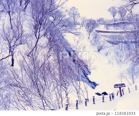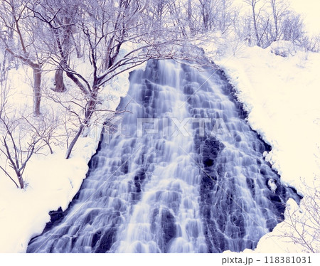 オシンコシンの滝の雪景色「日本の滝百選」「知床国立公園」「知床八景」