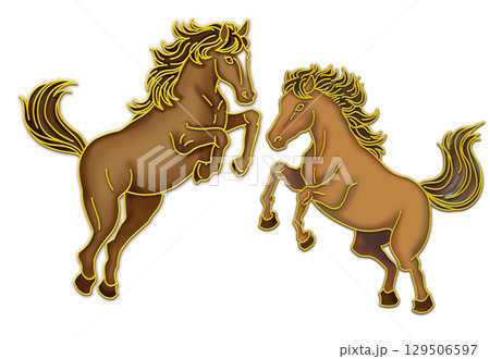 馬のイラスト_午年_ウマ年_午年の年賀状_向かい合う二頭の茶色の馬