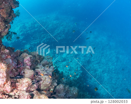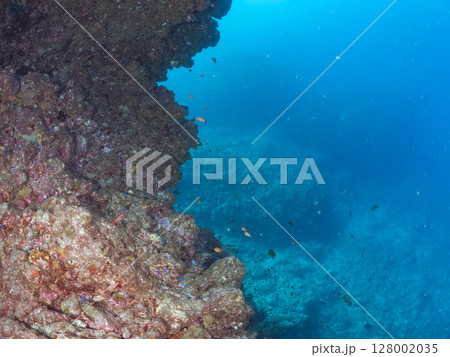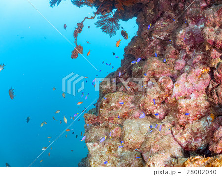 ドロップオフのキンギョハナダイ、キホシスズメダイ、ソラスズメダイ他の群れ 賀茂郡南伊豆町中木ヒリゾ浜