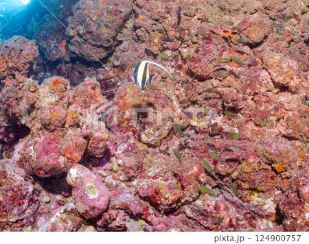 ツノダシ、ウメイロモドキ、キホシスズメダイ他の群れ。ヒリゾ浜中木南伊豆町伊豆半島静岡県2024