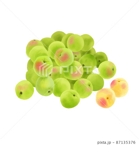 緑色の青梅と赤く色づいた黄色の梅の実 - 初夏・梅仕事のイメージ素材
