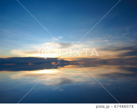 ミラーレイク・ウユニ塩湖の美しい夕景