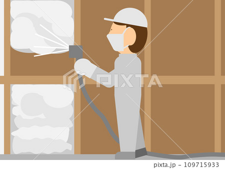 断熱材を吹き付ける作業をしている人のイメージ素材