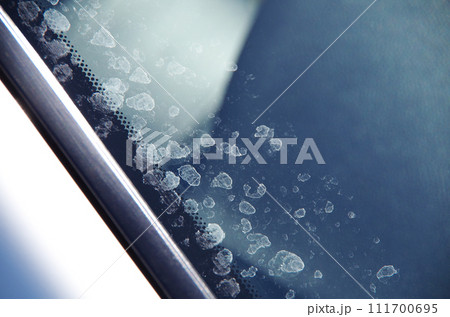 自動車の窓に付着したウロコ状の汚れ